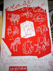 Sérigraphie rouge erase errata kytes 466 bathurst VG 43×28