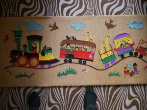 Années 50 – le petit train – Feutrine sur toile de jute – 53 x 125 VG